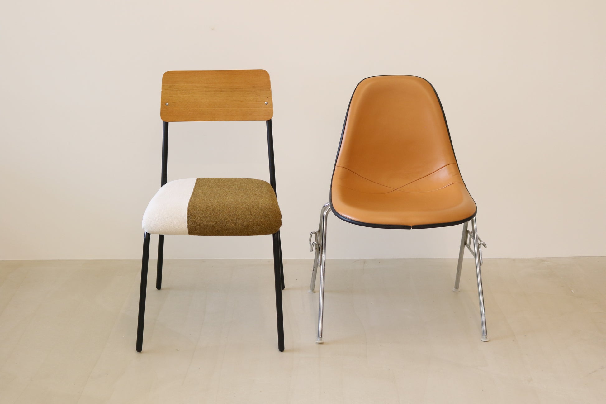 サイネリア(CINERARIA)の椅子をバイカラーで張替えました。