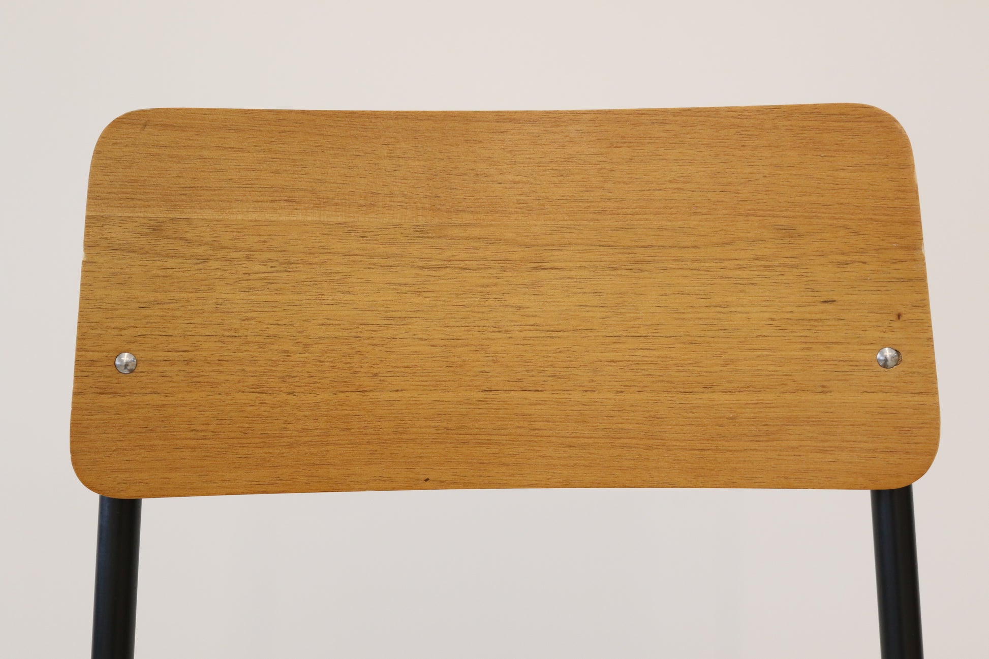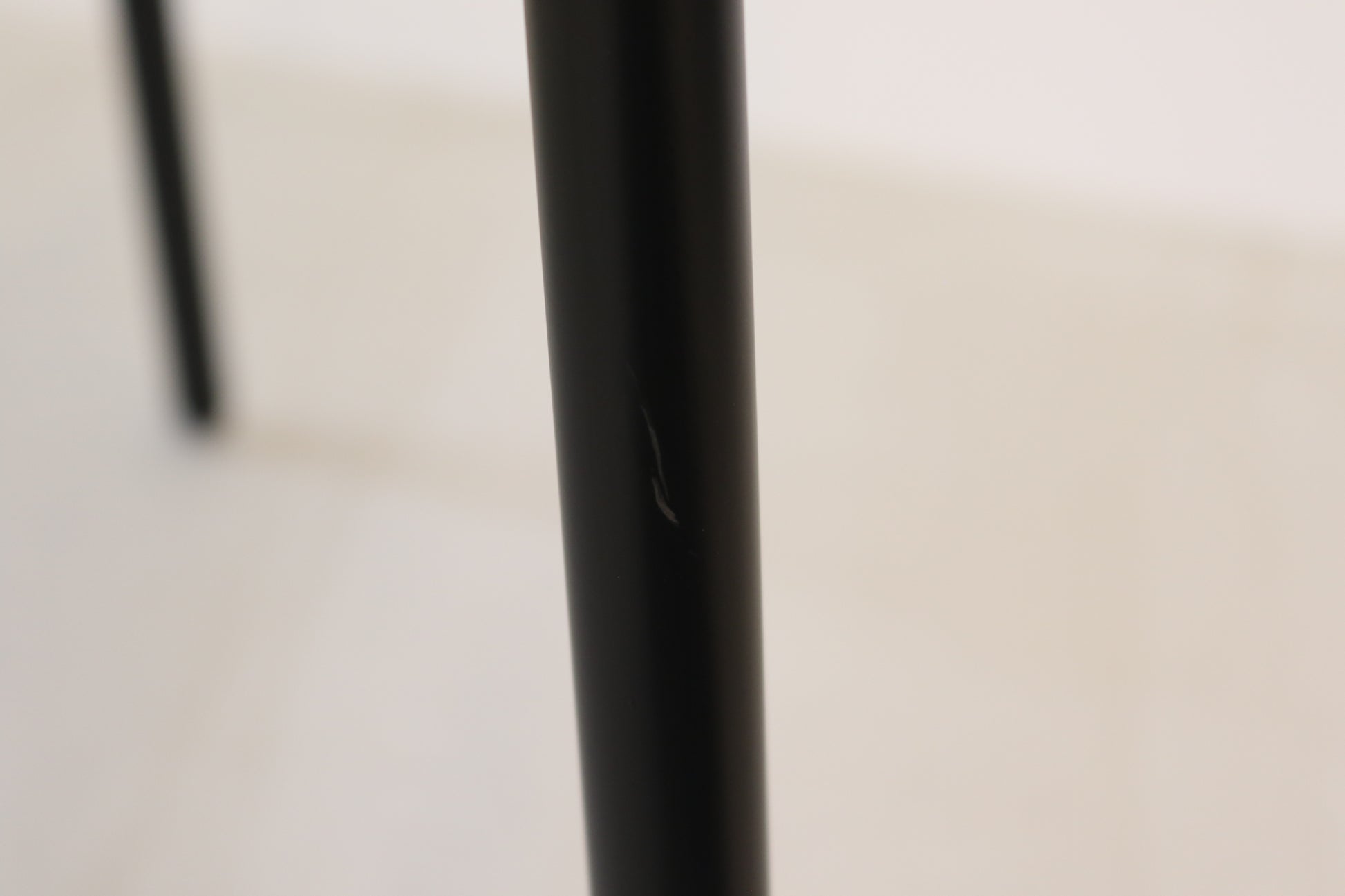 背もたれは天然木なのであたたかみがありつつも、脚は細めのブラックアイアンなのですっきりとシャープに見せてくれるデザインです。