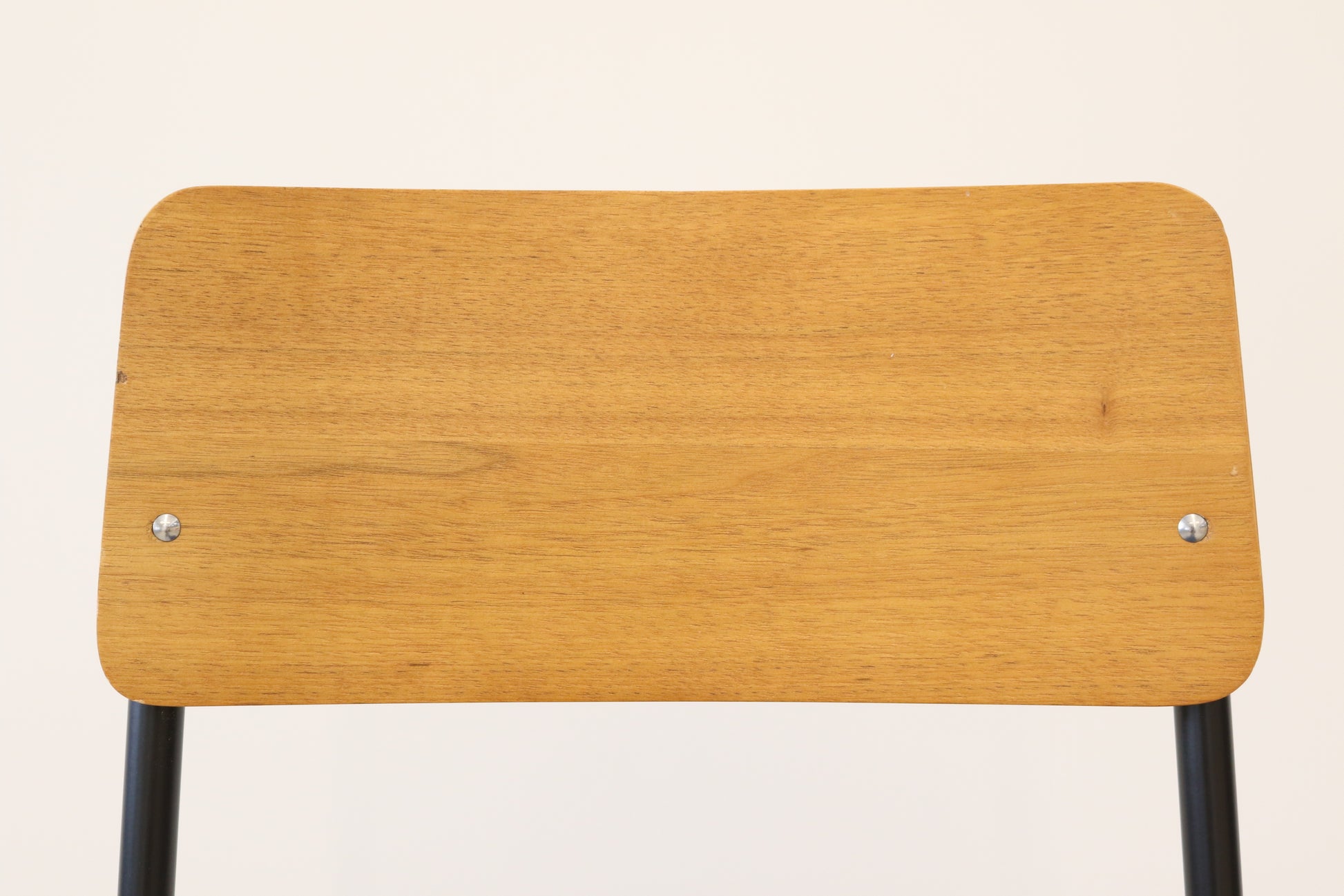 背もたれは天然木なのであたたかみがありつつも、脚は細めのブラックアイアンなのですっきりとシャープに見せてくれるデザインです。