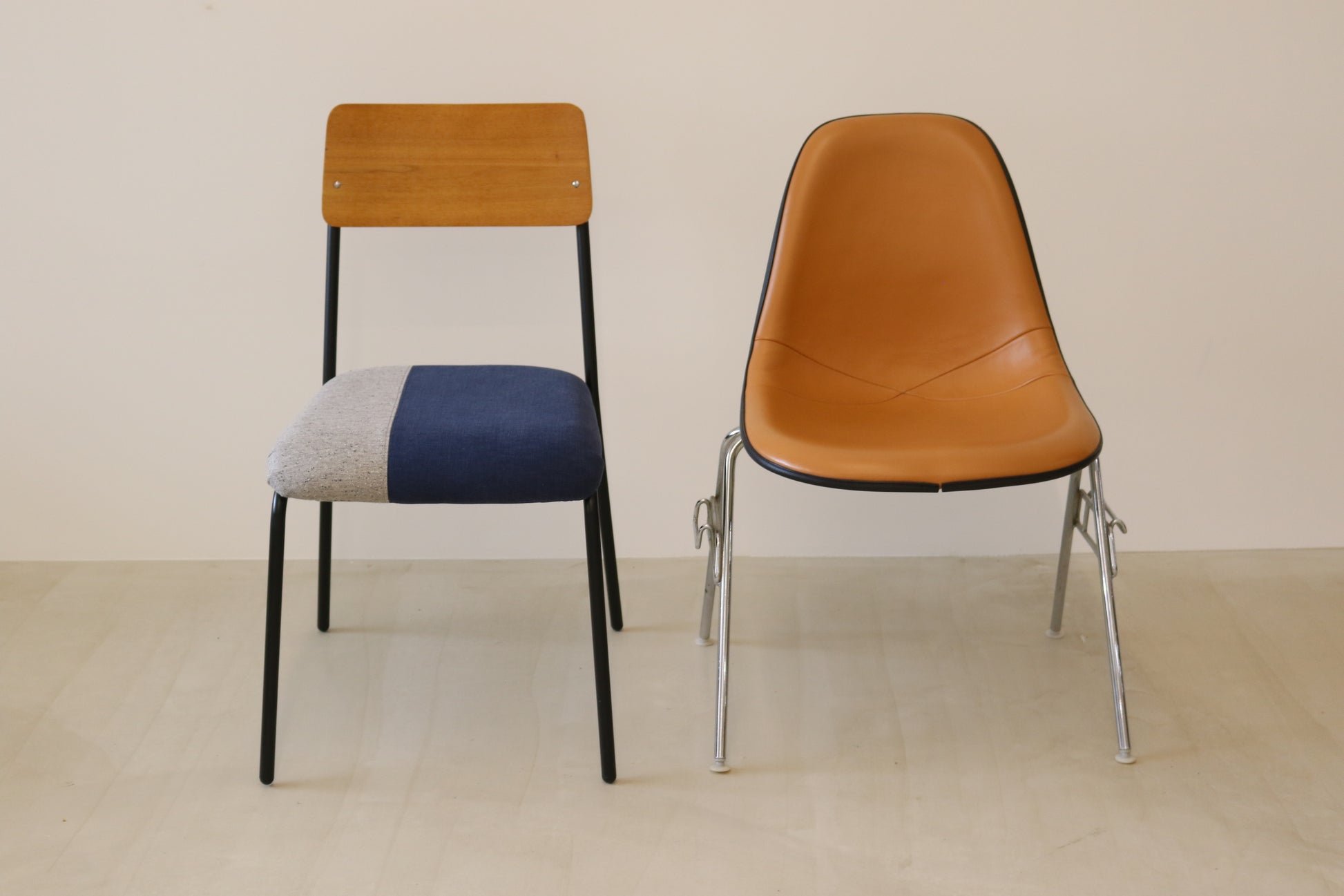 サイネリア(CINERARIA)の椅子をバイカラーで張替えました。