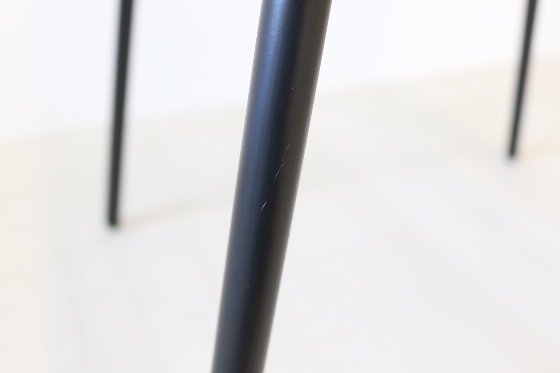 背もたれは天然木なのであたたかみがありつつも、脚は細めのブラックアイアンなのですっきりとシャープに見せてくれるデザインです。