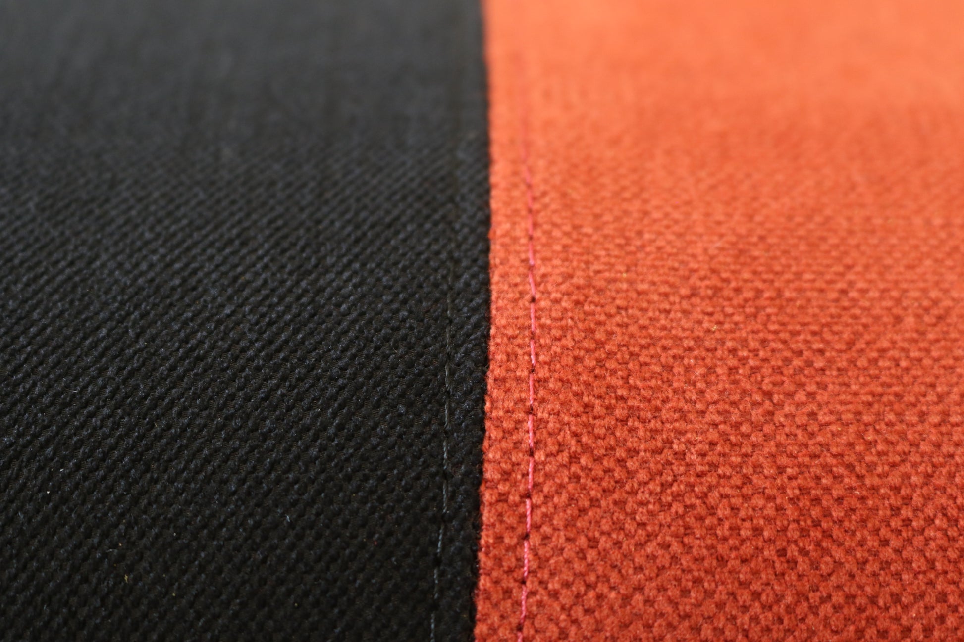 コーラルのファブリックはMAID IN ITALYならではの深い色合いと柔らかな風合いが特徴。ブラックとの掛け合わせでシャープな印象に。