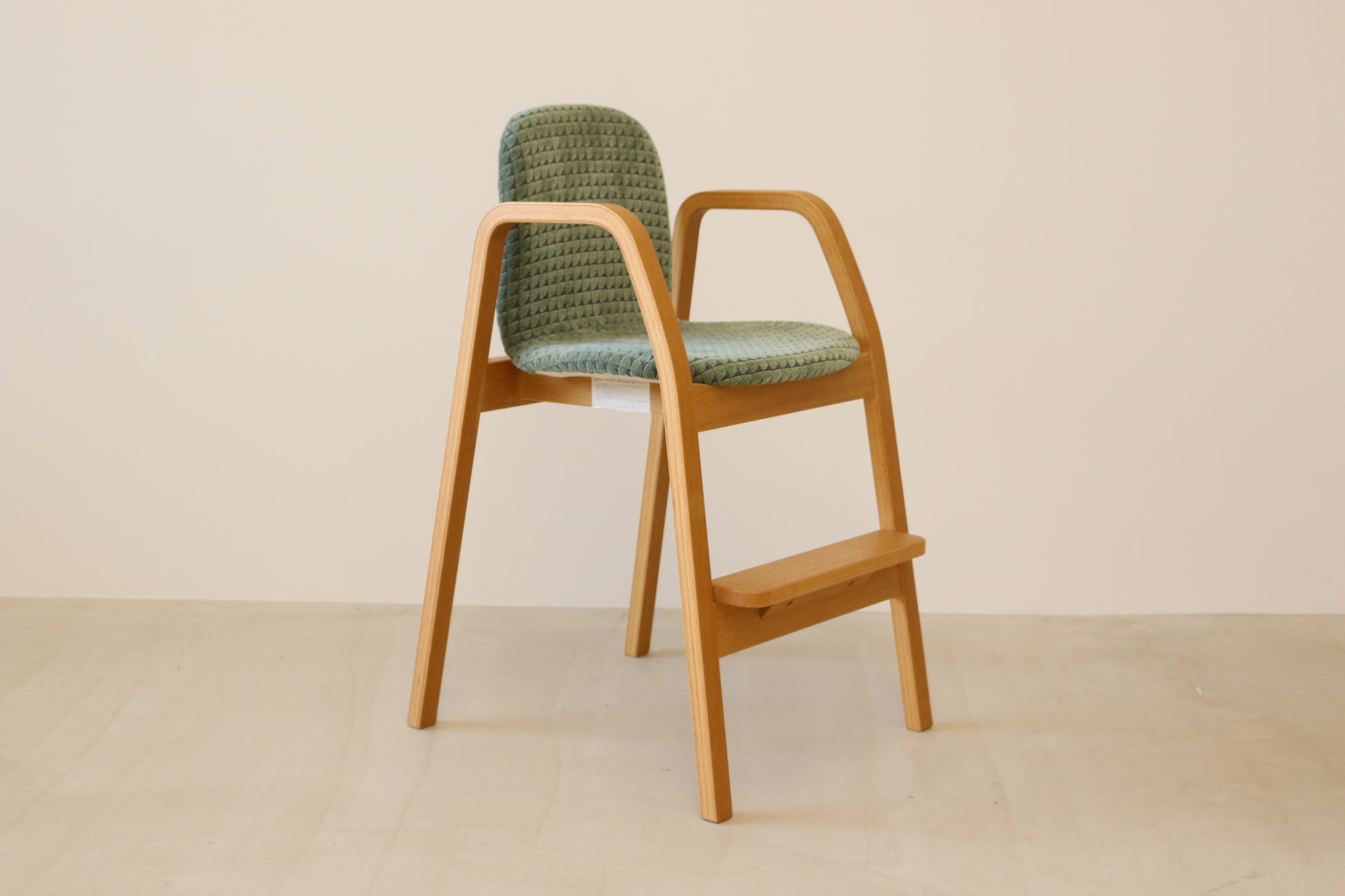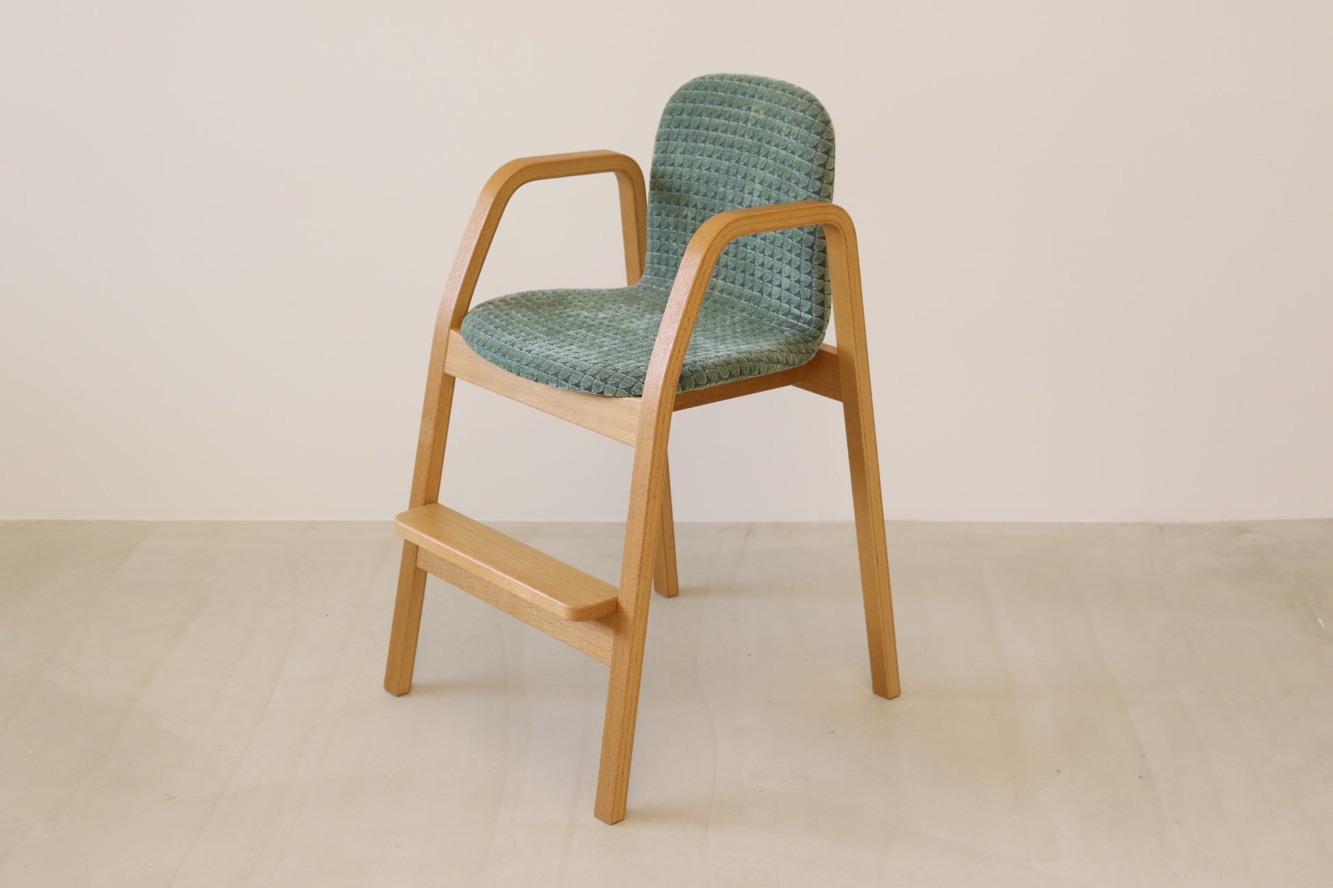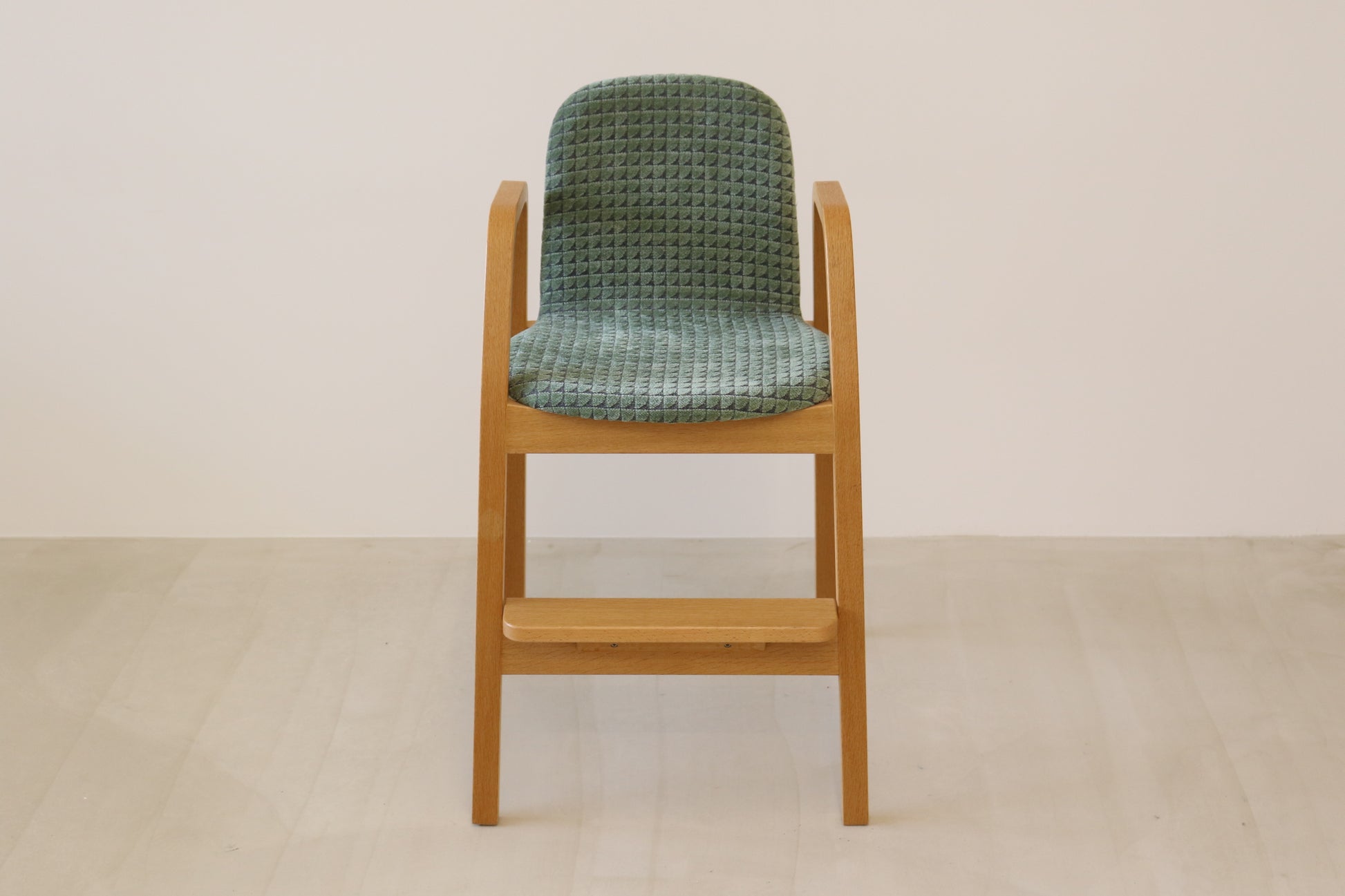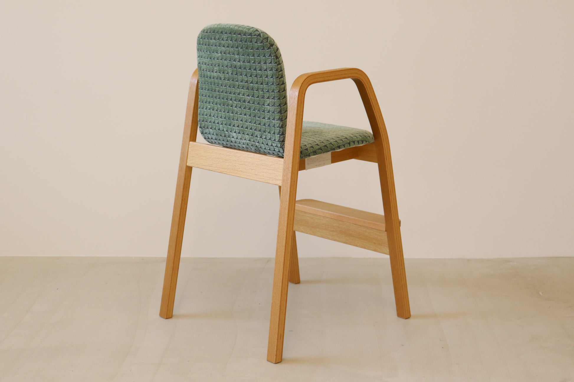 天童木工のキッズチェアをグリーンベースのファブリックで張替えました。
