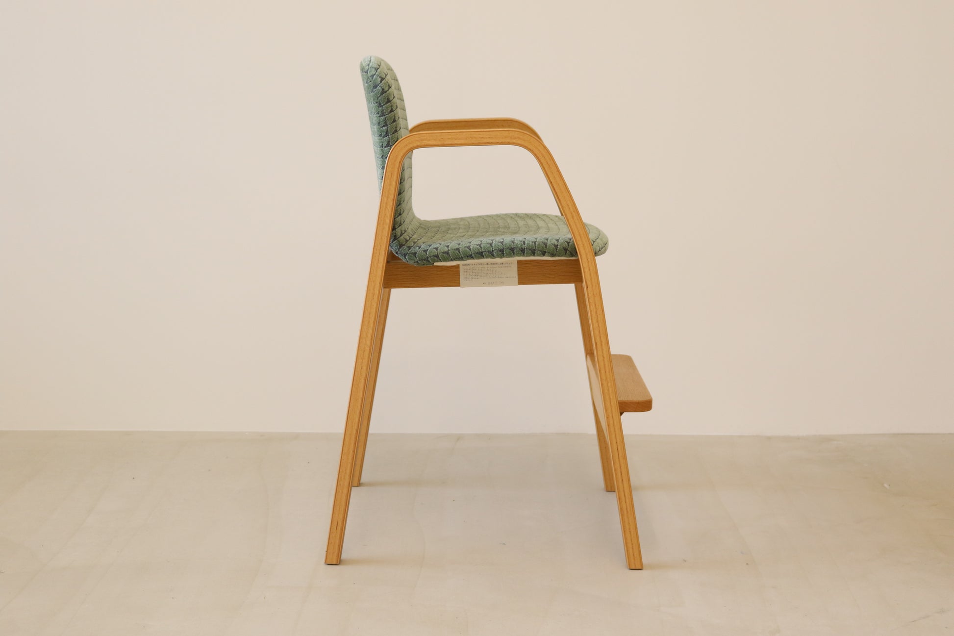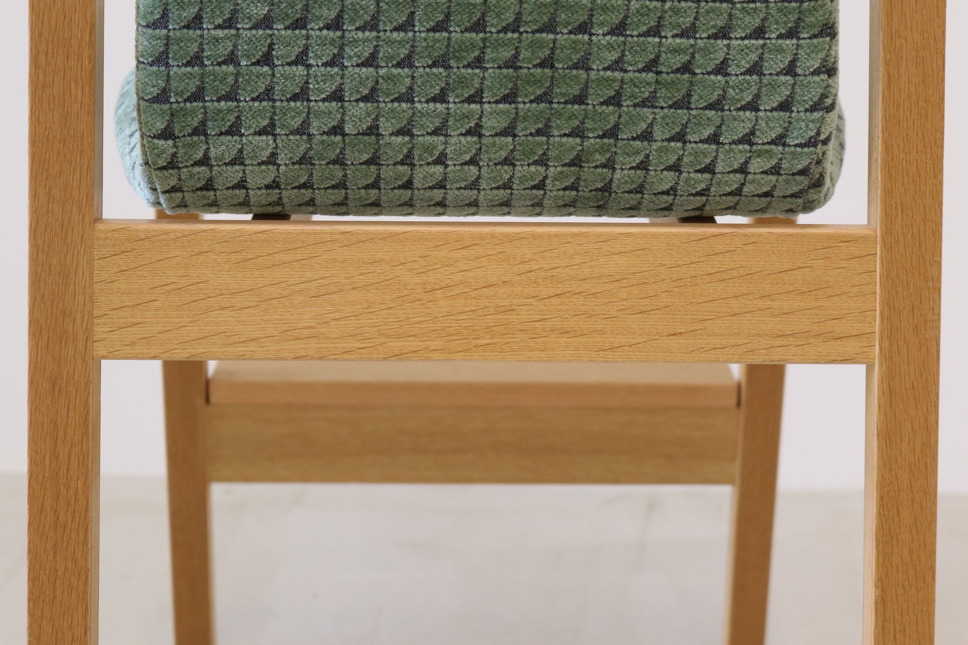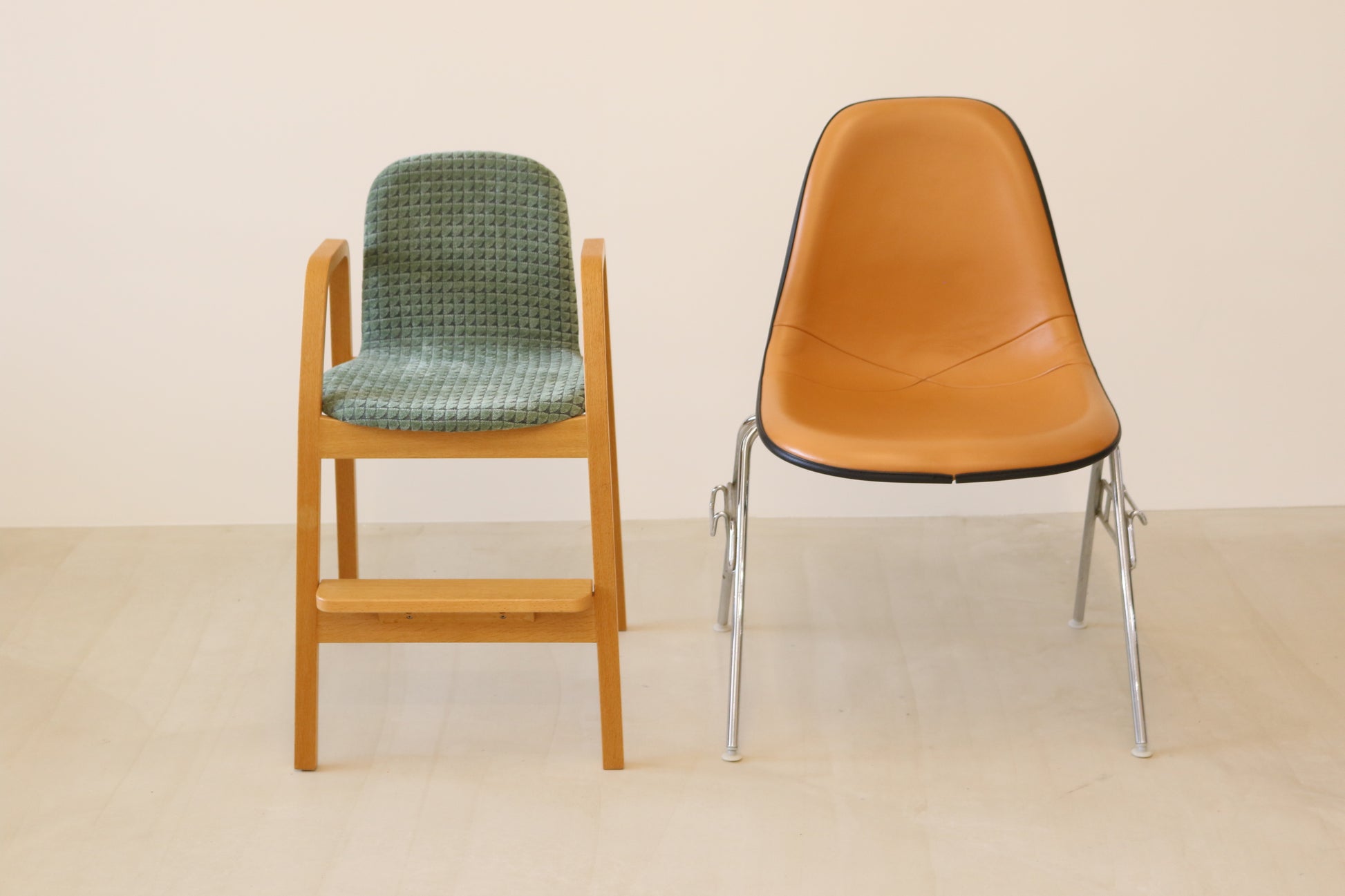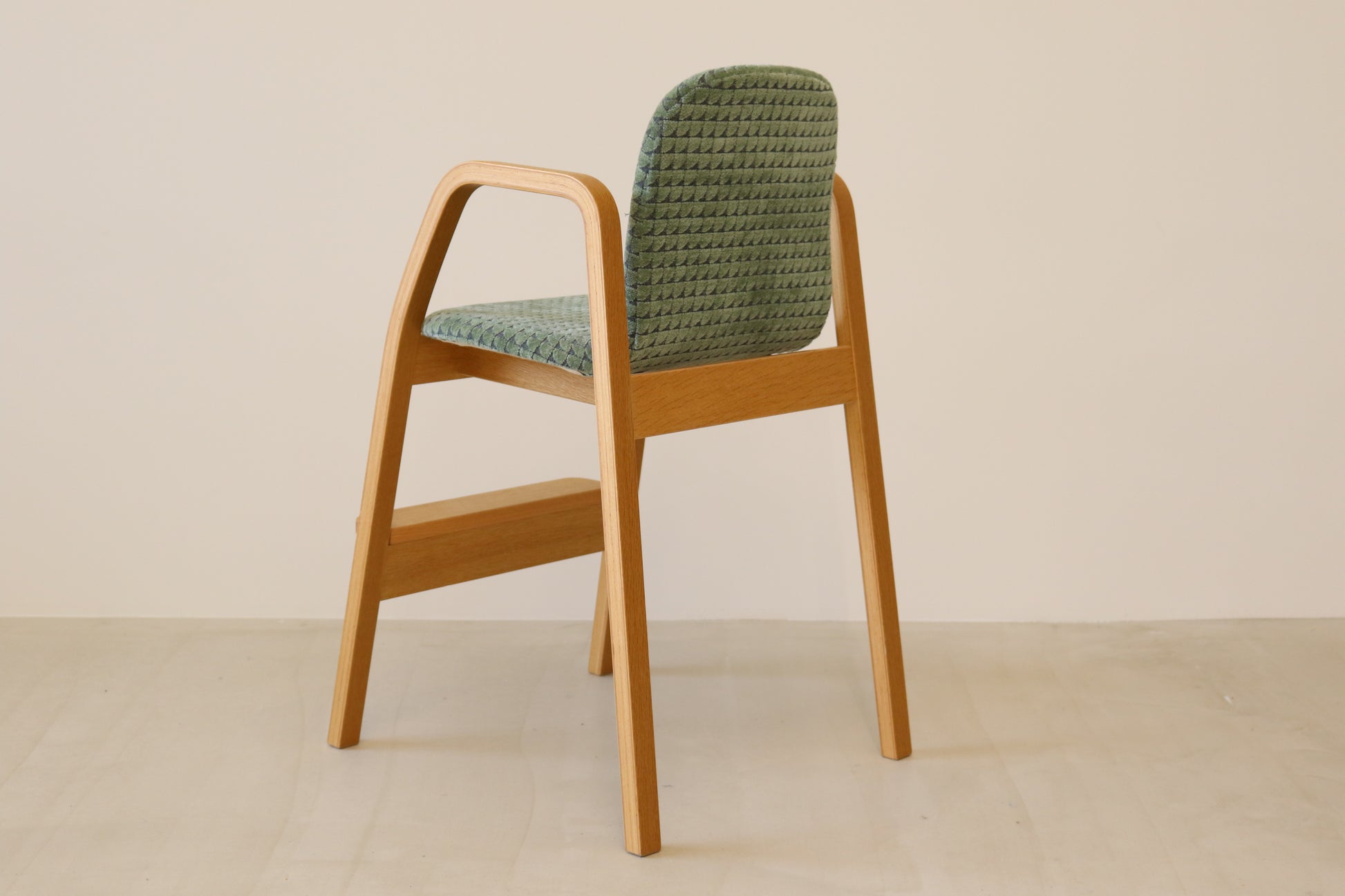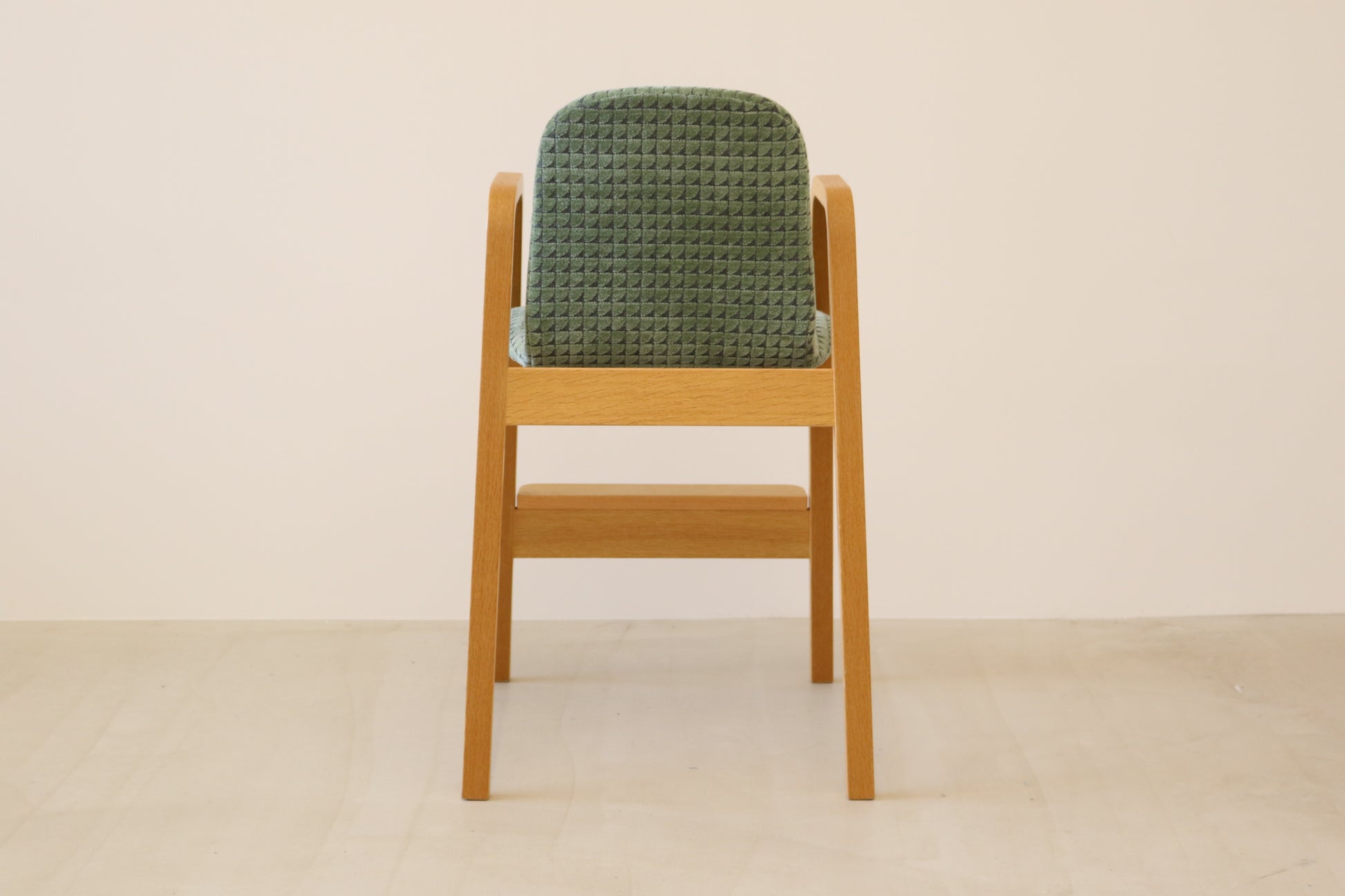 天童木工のキッズチェアをグリーンベースのファブリックで張替えました。