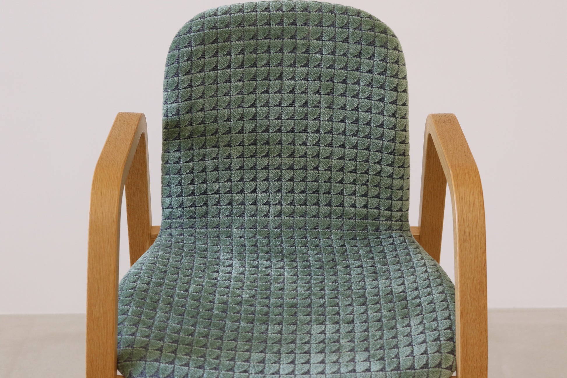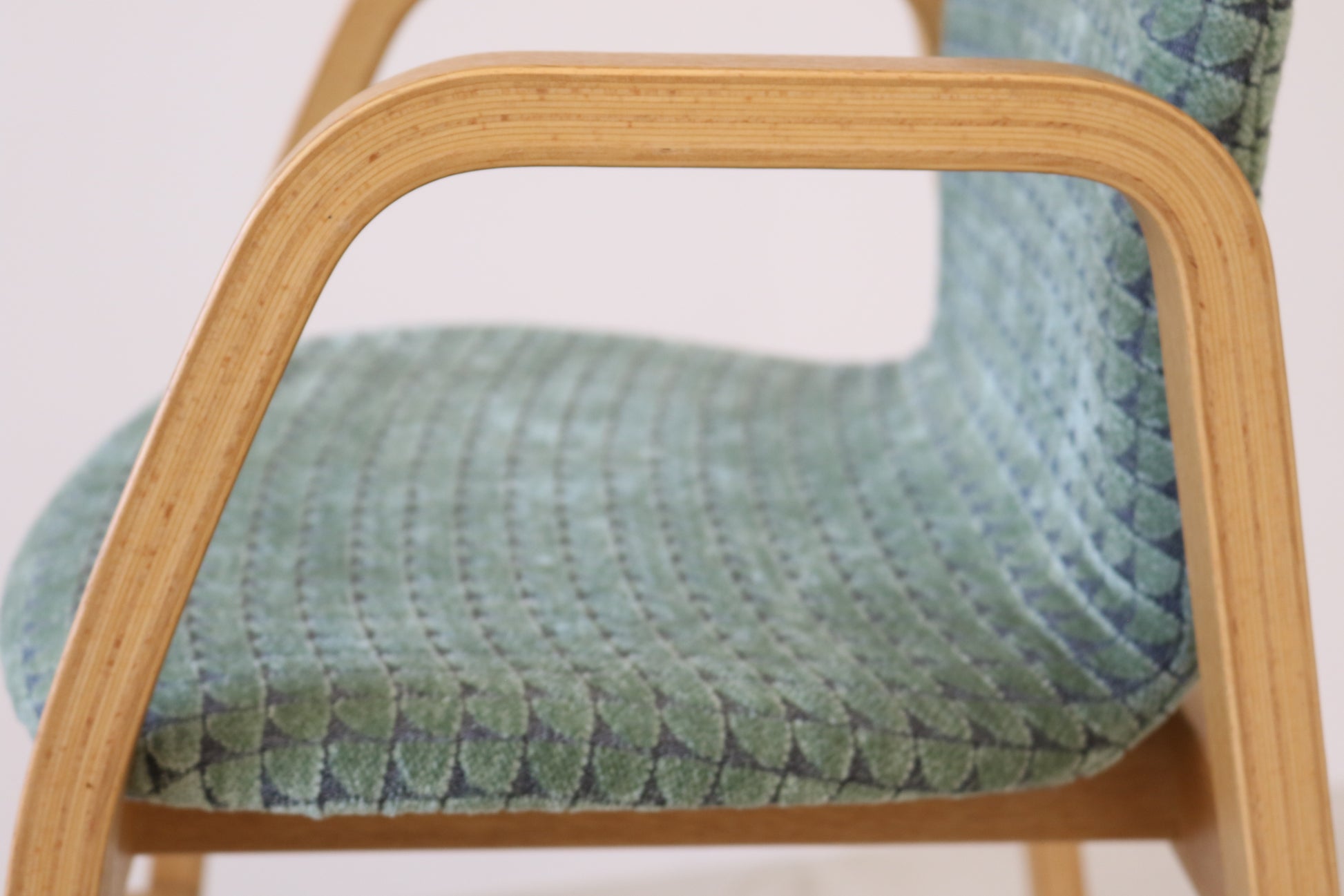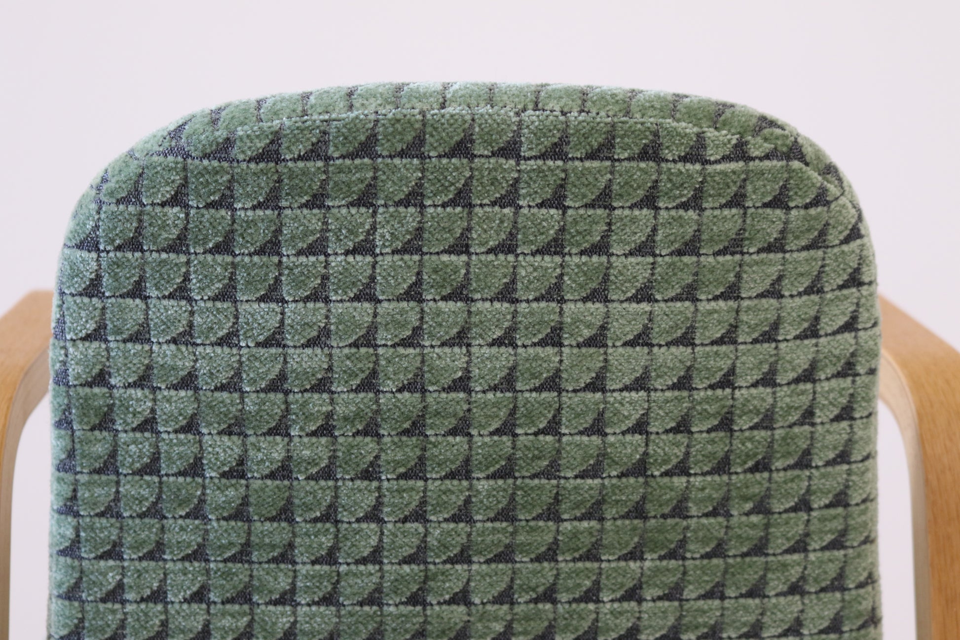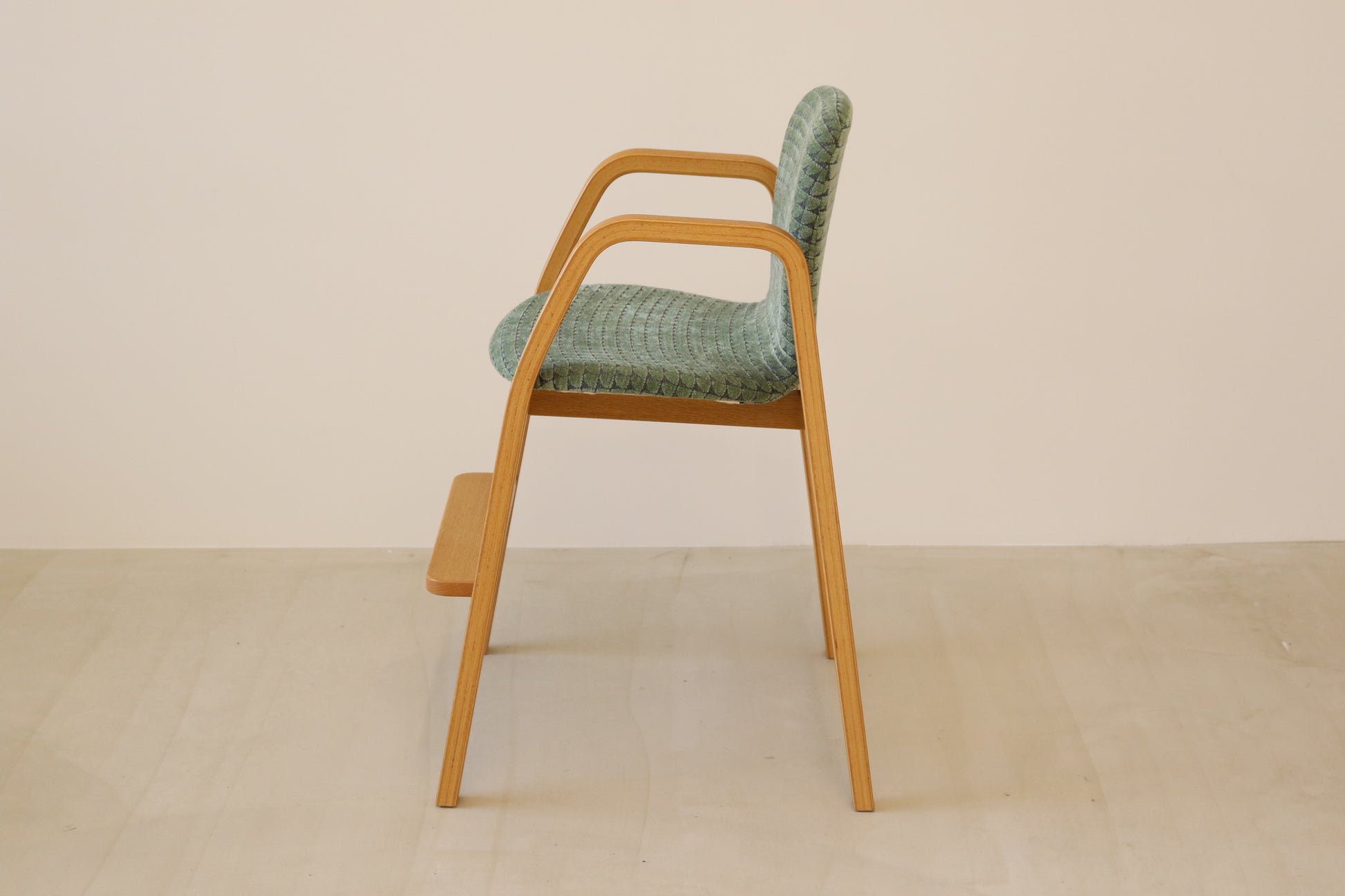 天童木工のキッズチェアをグリーンベースのファブリックで張替えました。