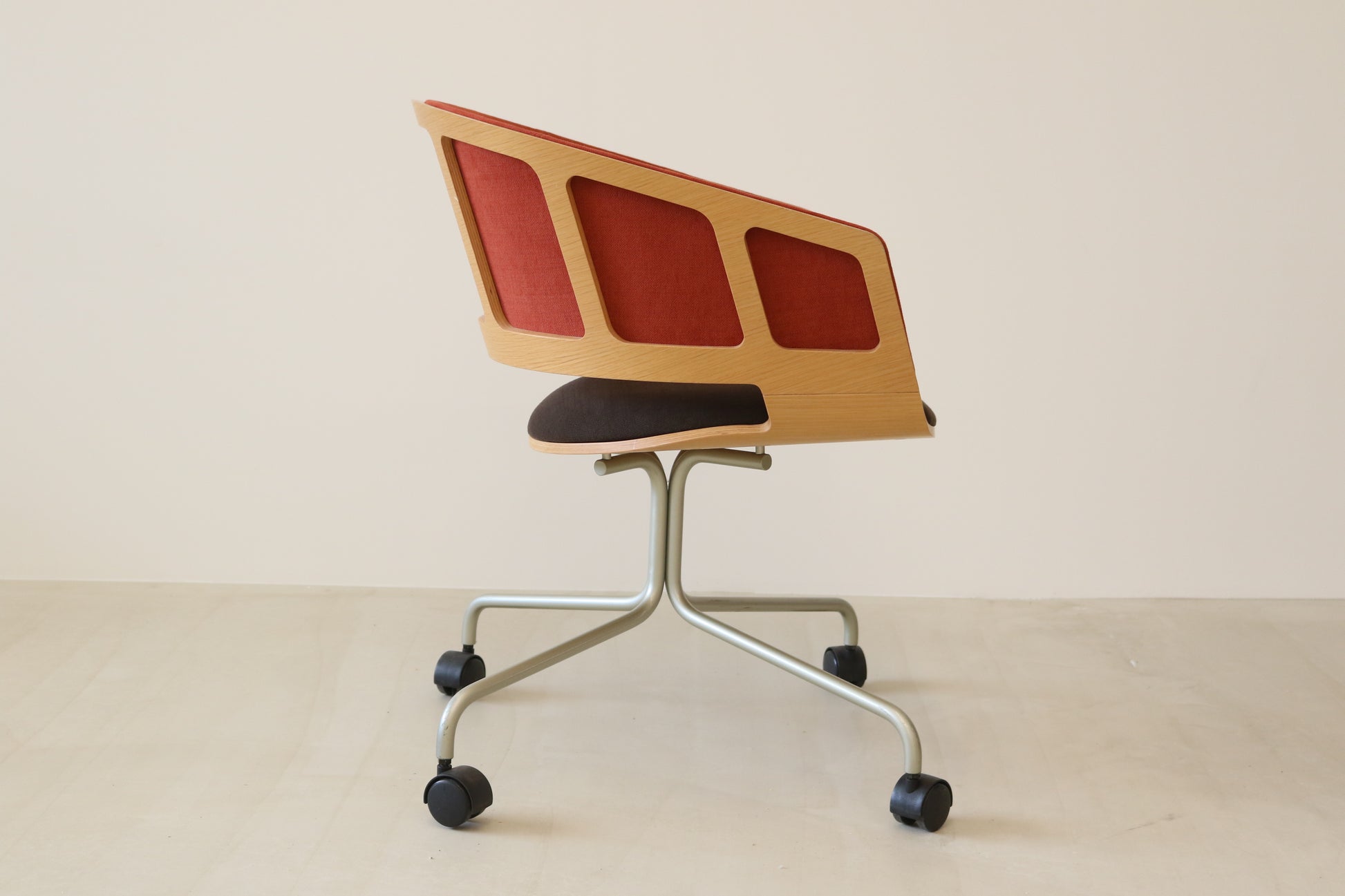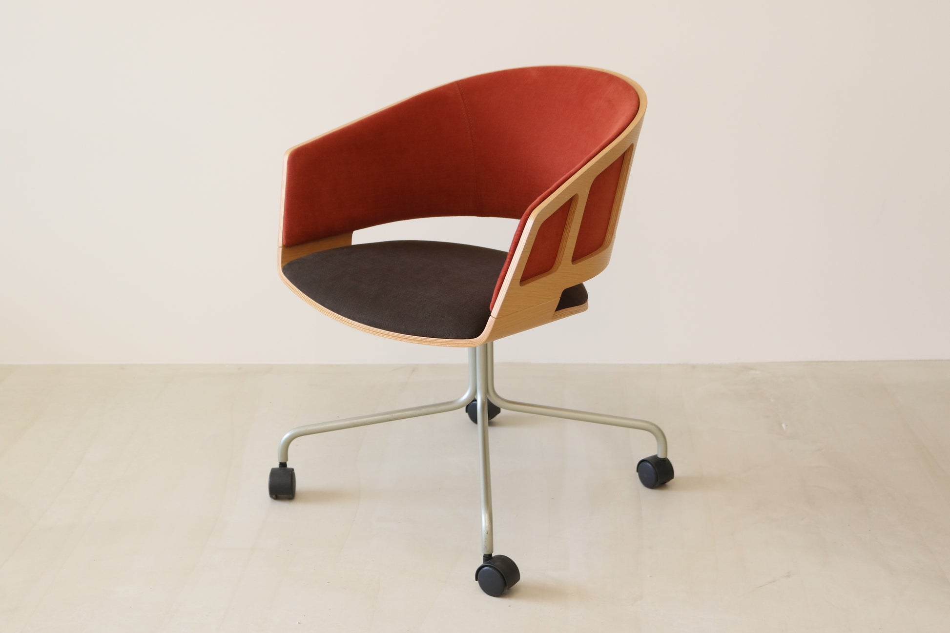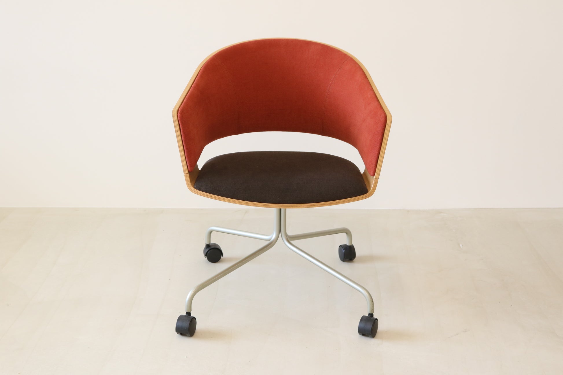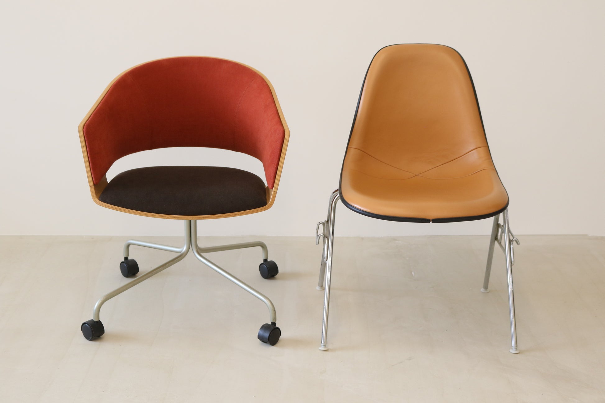 アルフレックス(arflex)のデスクチェアをコーラル×ブラウンのツートンで張替えました。