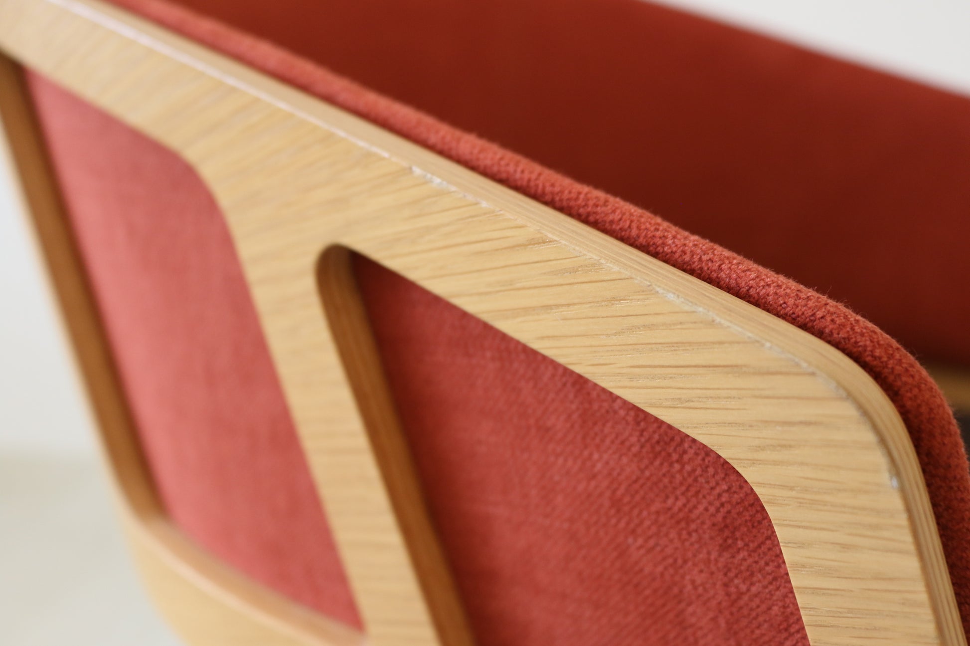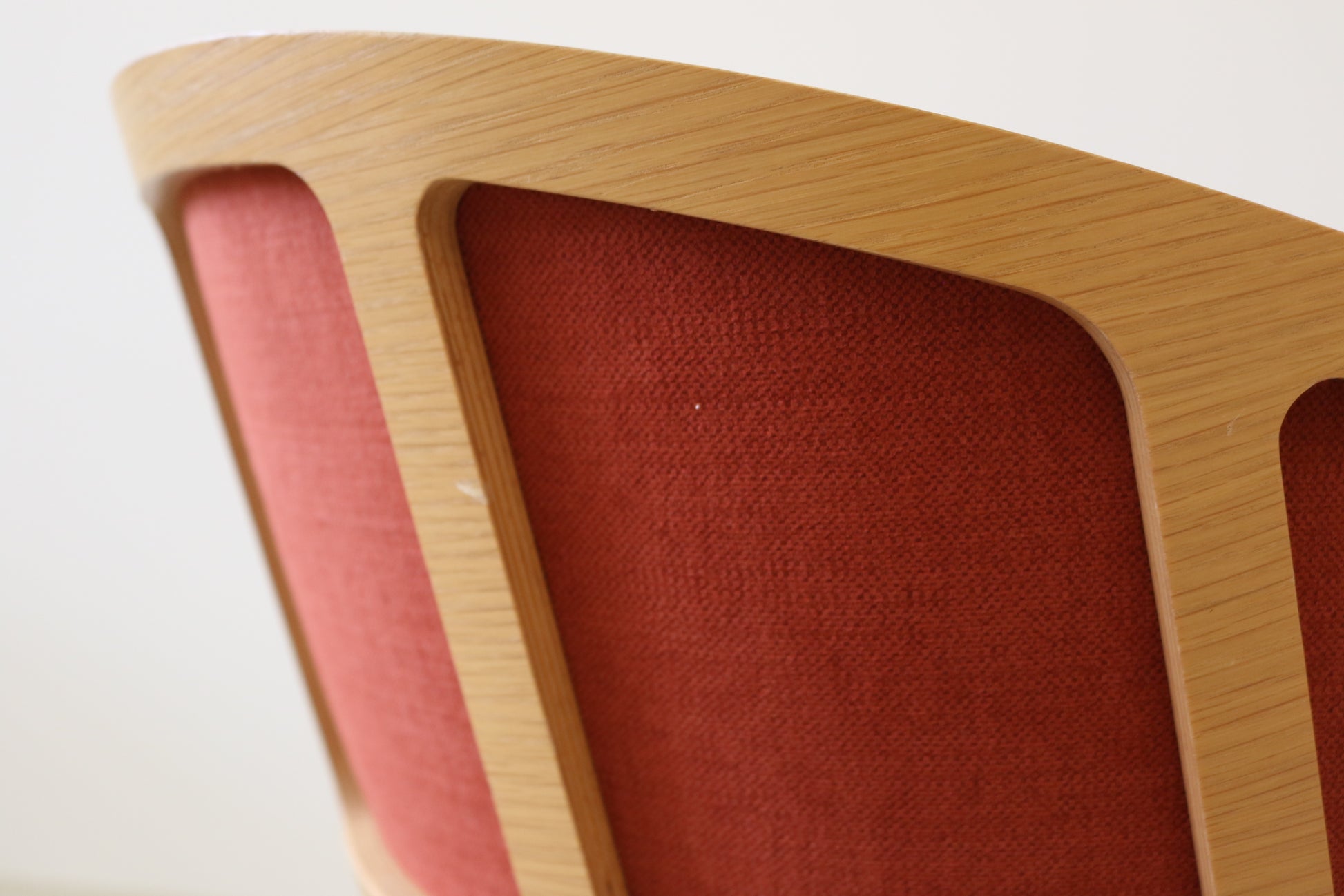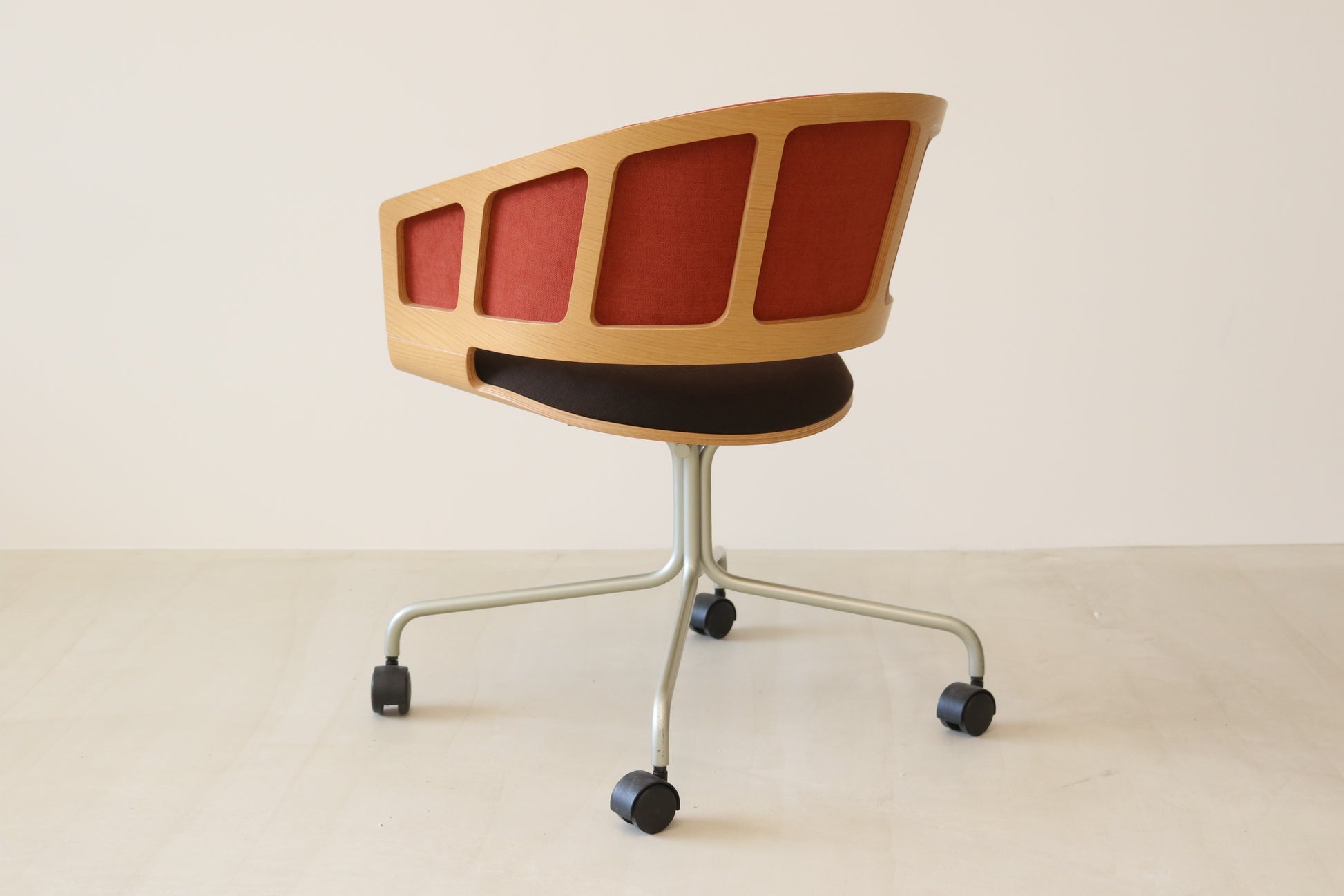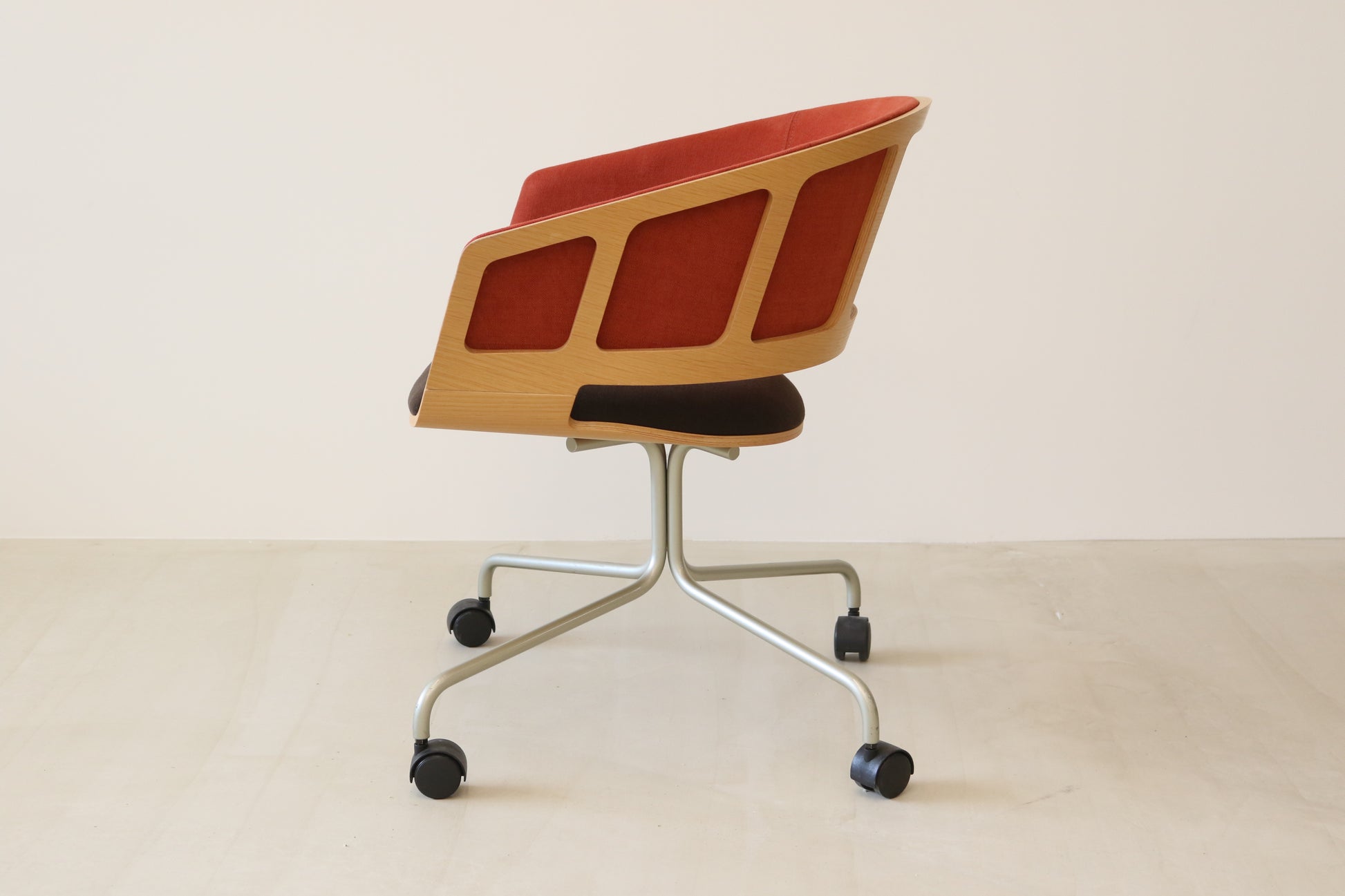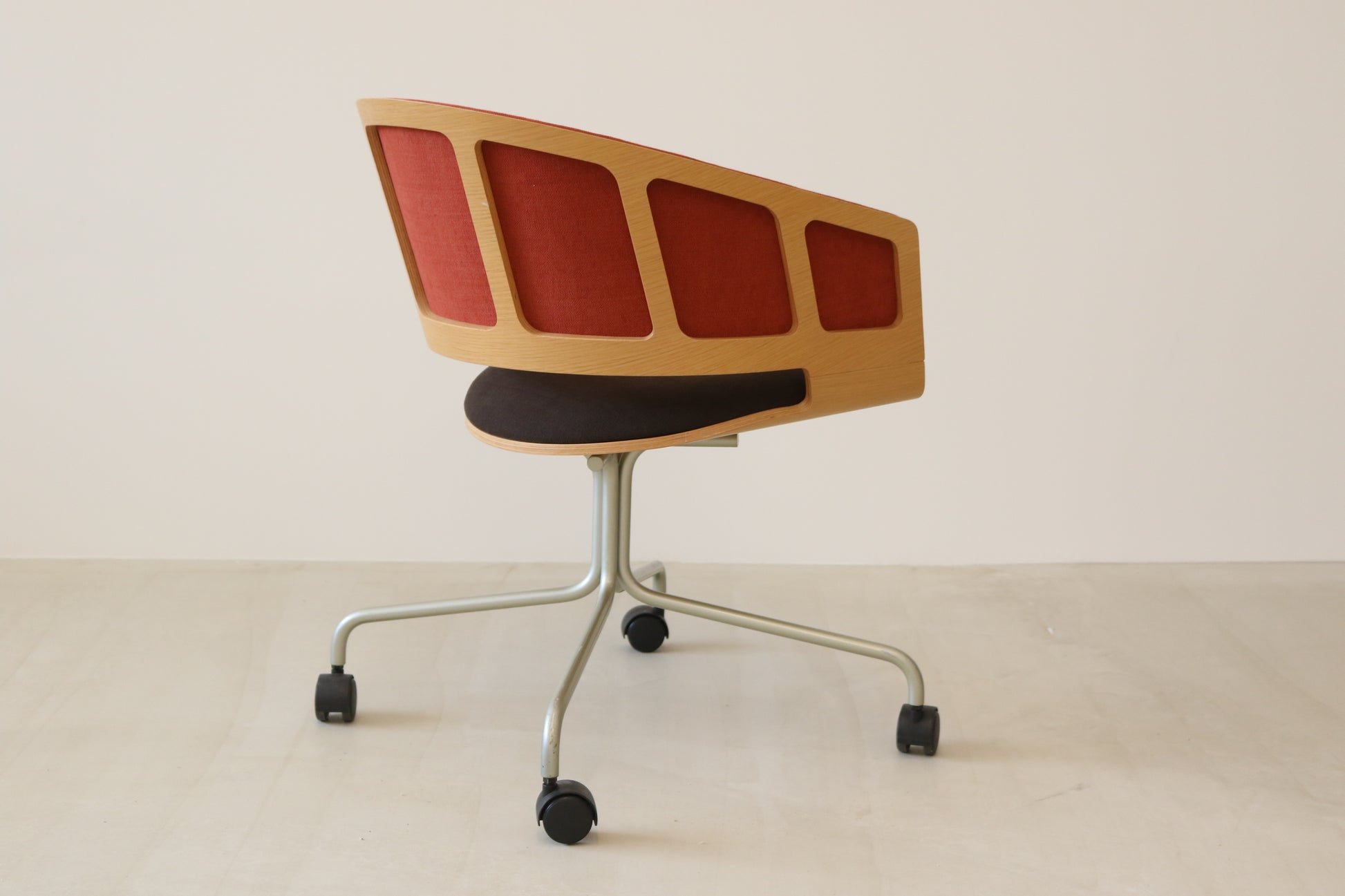 アルフレックス(arflex)のデスクチェアをコーラル×ブラウンのツートンで張替えました。
